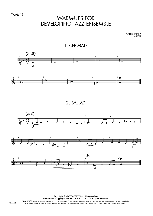 Digital Sheet Music for Warm-ups for Developing Jazz Ensemble - Trumpet 3 by Chris Sharp scored for Jazz Ensemble; id:455980