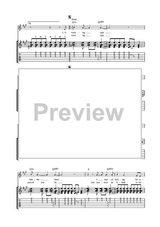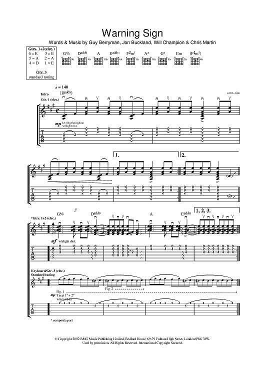 Digital Sheet Music for Warning Sign by Coldplay scored for Guitar Tab; id:377695