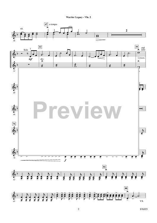 Digital Sheet Music for Warrior Legacy - Violin 2 by Soon Hee Newbold scored for Orchestra; id:411664