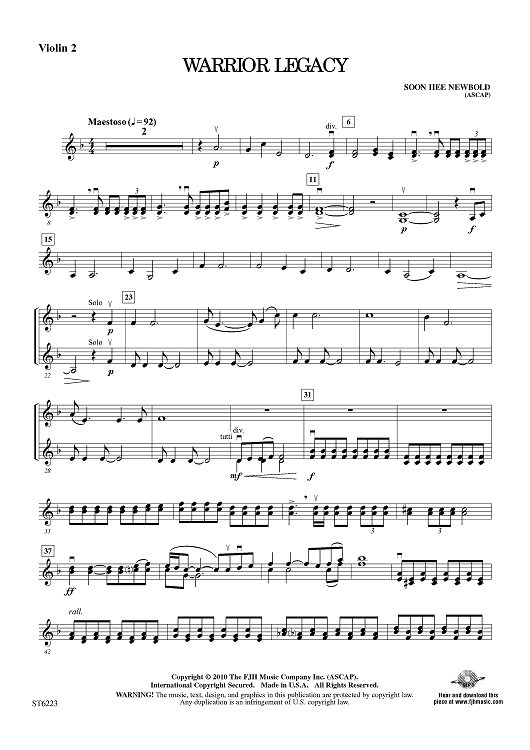 "Warrior Legacy - Violin 2" Sheet Music by Soon Hee Newbold
