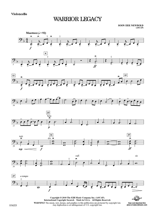 "Warrior Legacy - Violoncello" Sheet Music by Soon Hee Newbold