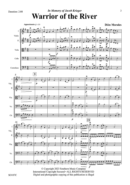 Digital Sheet Music for Warrior of the River - Full Score by Dion Morales scored for String Orchestra; id:507646