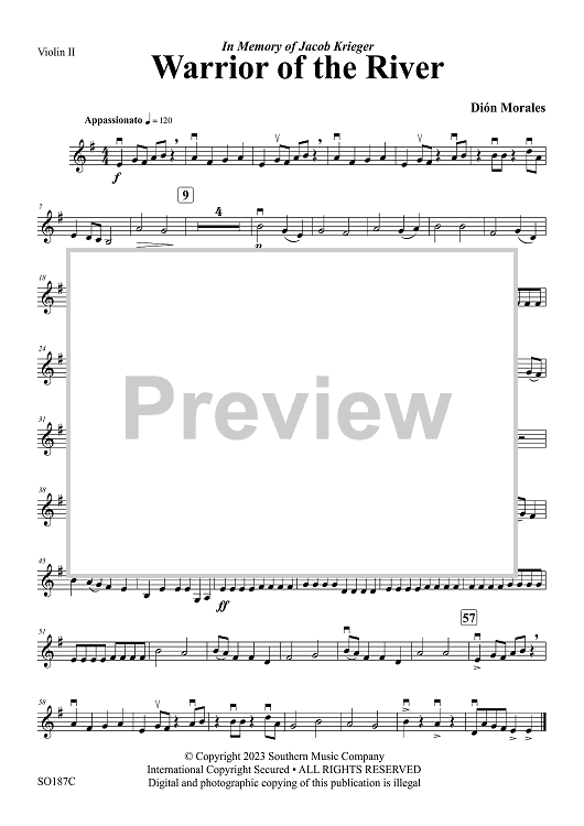 Digital Sheet Music for Warrior of the River - Violin 2 by Dion Morales scored for String Orchestra; id:507648