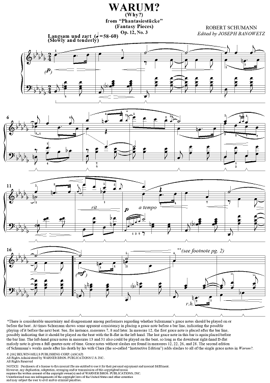 Digital Sheet Music for Warum?, Op. 12, No. 3 by Robert Schumann, Joseph Banowetz scored for Piano Solo; id:297457
