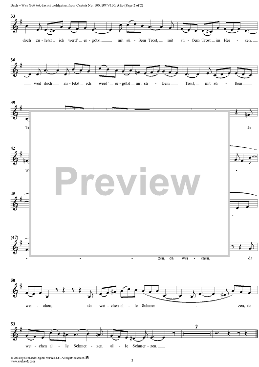 ""Was Gott tut, das ist wohlgetan", Aria, No. 5 from Cantata No. 100: "Was Gott tut, das ist wohlgetan" - Alto" Sheet Music by Johann Sebastian Bach