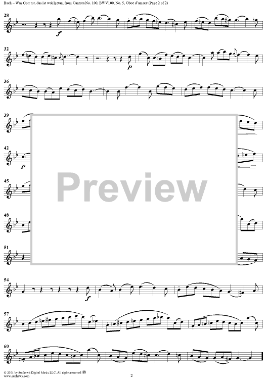 ""Was Gott tut, das ist wohlgetan", Aria, No. 5 from Cantata No. 100: "Was Gott tut, das ist wohlgetan" - Oboe d'amore" Sheet Music by Johann Sebastian Bach