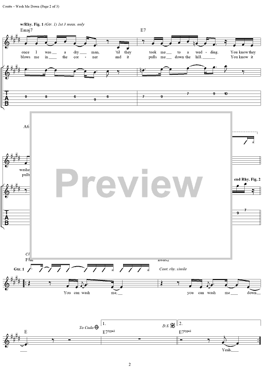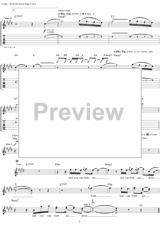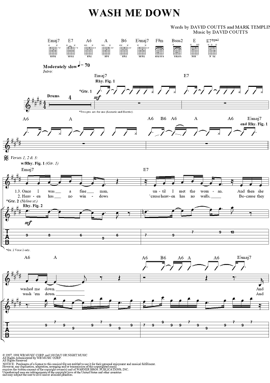 Digital Sheet Music for Wash Me Down by David Coutts, Mark Templin, Talk Show scored for Guitar Tab/Vocal; id:120120