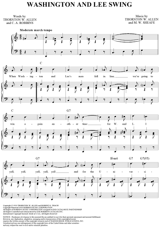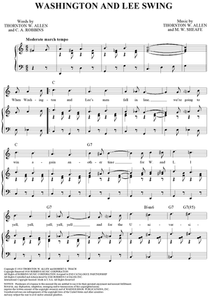 Digital Sheet Music for Washington and Lee Swing by M. W. Sheafe, Thornton W. Allen, C. A. Robbins scored for Piano/Vocal/Chords; id:277433