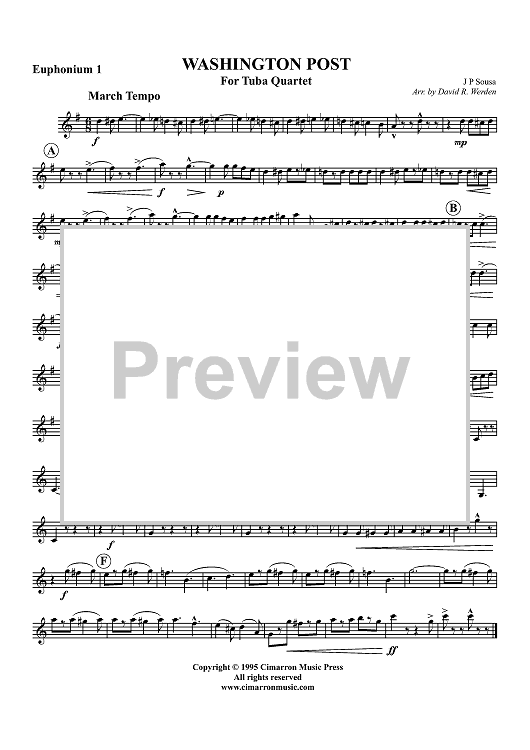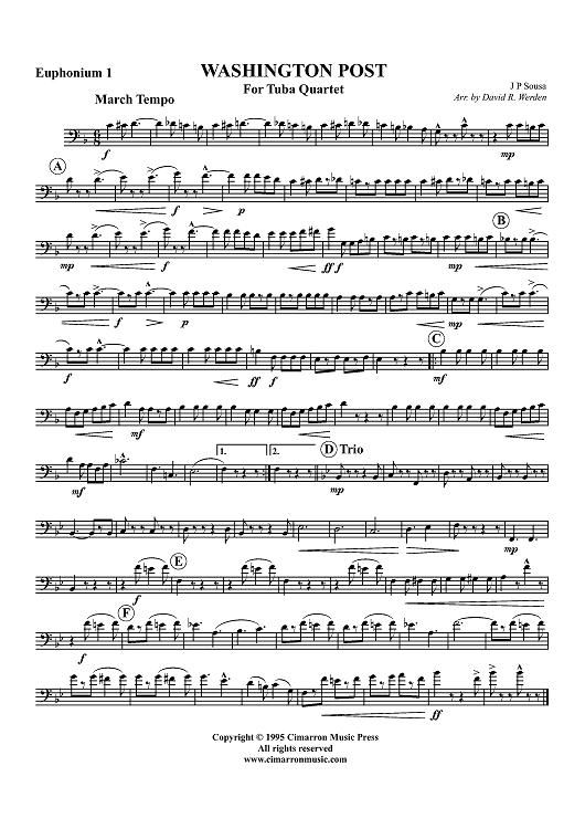 Digital Sheet Music for Washington Post - Euphonium 1 BC/TC by John Philip Sousa, David Werden scored for Tuba Quartet; id:314163