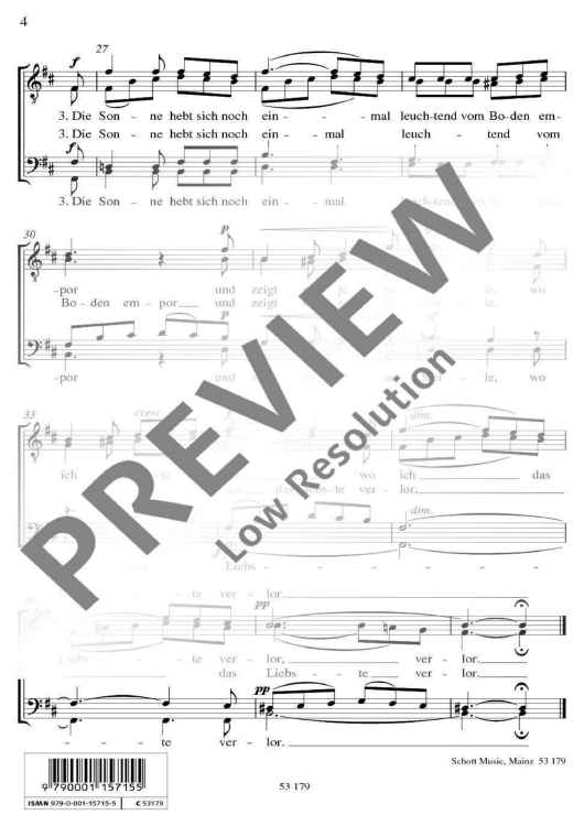 A highly romantic composition based on the poetic text by Heinrich Heine. A rediscovery which everyone has been talking about since the CD recordings by the famous ensembles 'Singer Pur' and 'Singphoniker'. In our new edition the piece has been arranged for male choir because it is an ideal addition to the secular concert repertoire.