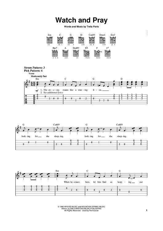 Digital Sheet Music for Watch And Pray by Twila Paris scored for Easy Guitar; id:372572