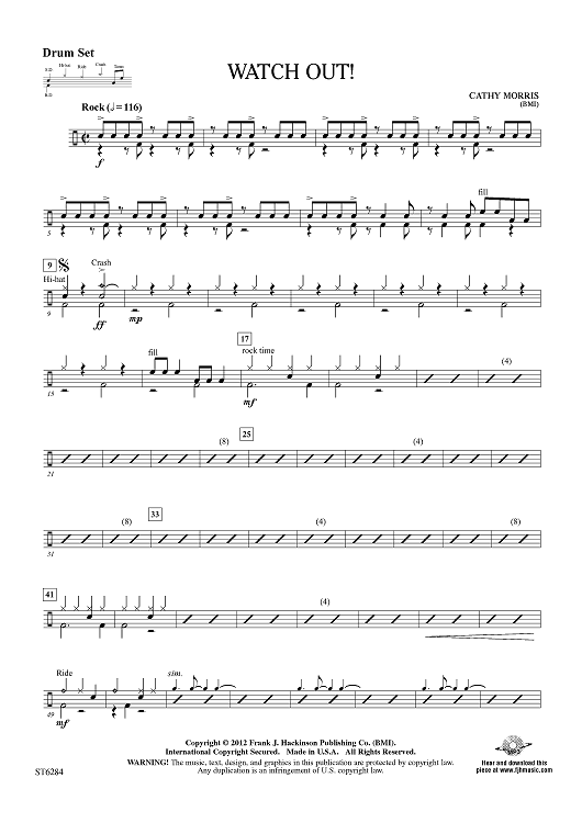 "Watch Out! - Drum Set" Sheet Music by Cathy Morris