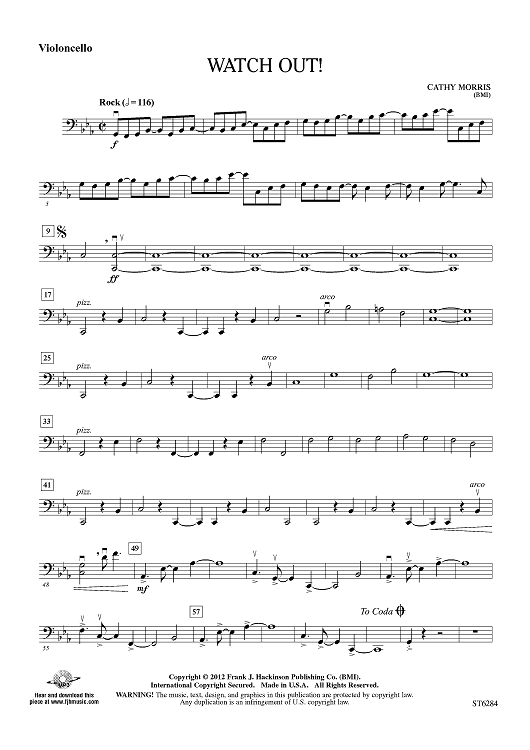 "Watch Out! - Violoncello" Sheet Music by Cathy Morris