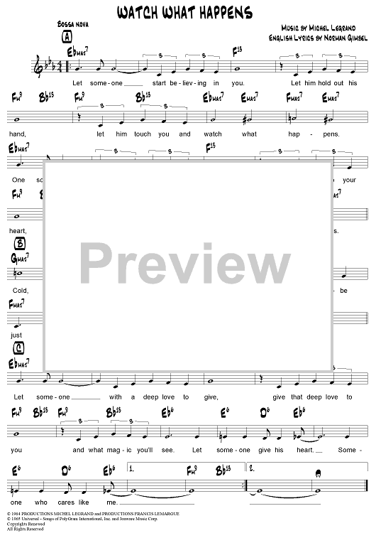 Digital Sheet Music for Watch What Happens by Michel LeGrand, Norman Gimbel scored for Lead Sheet; id:309899