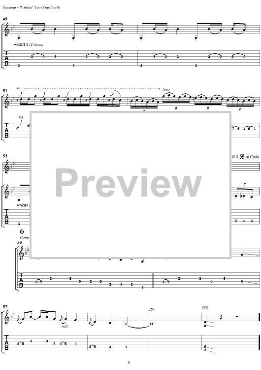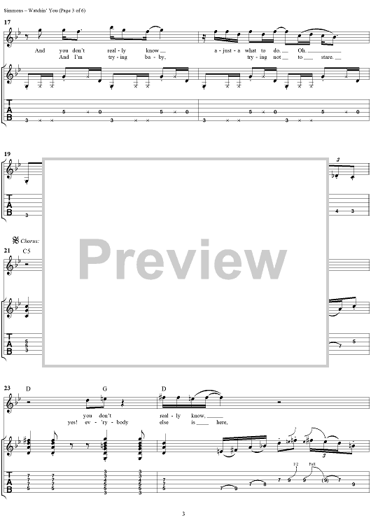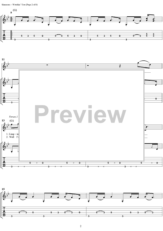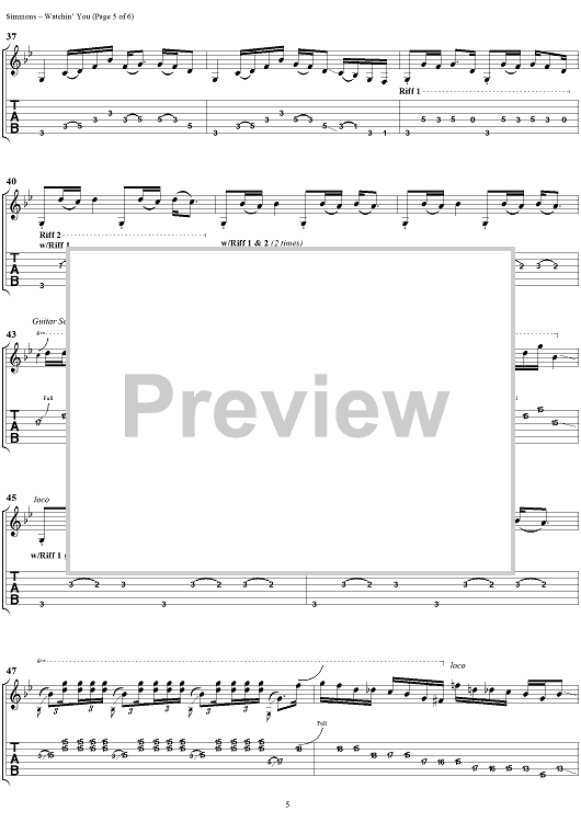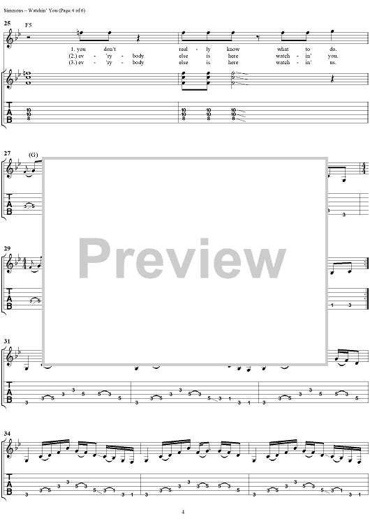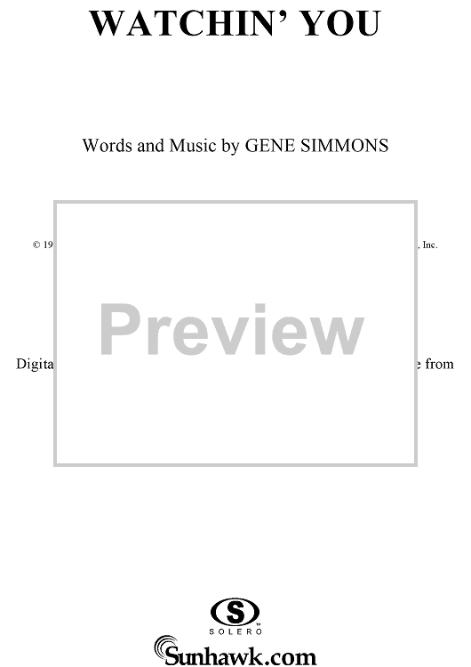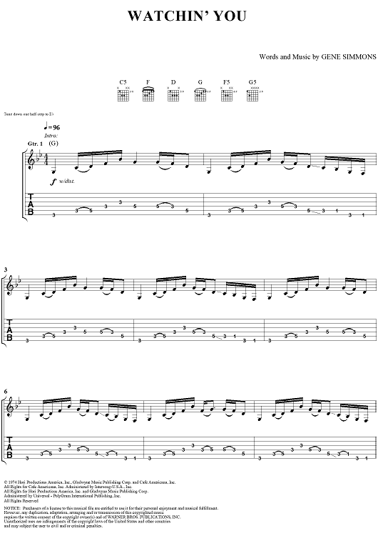 Digital Sheet Music for Watchin' You by Gene Simmons, KISS scored for Guitar Tab/Vocal; id:285157