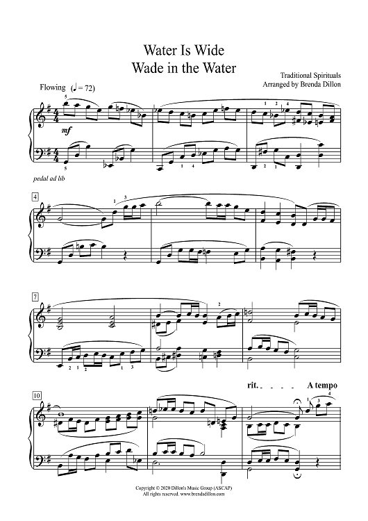 Digital Sheet Music for Water Is Wide - Wade in the Water by Traditional Spiritual, Brenda Dillon scored for Piano; id:469259