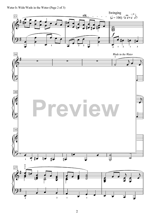 "Water Is Wide - Wade in the Water" Sheet Music by Traditional Spiritual