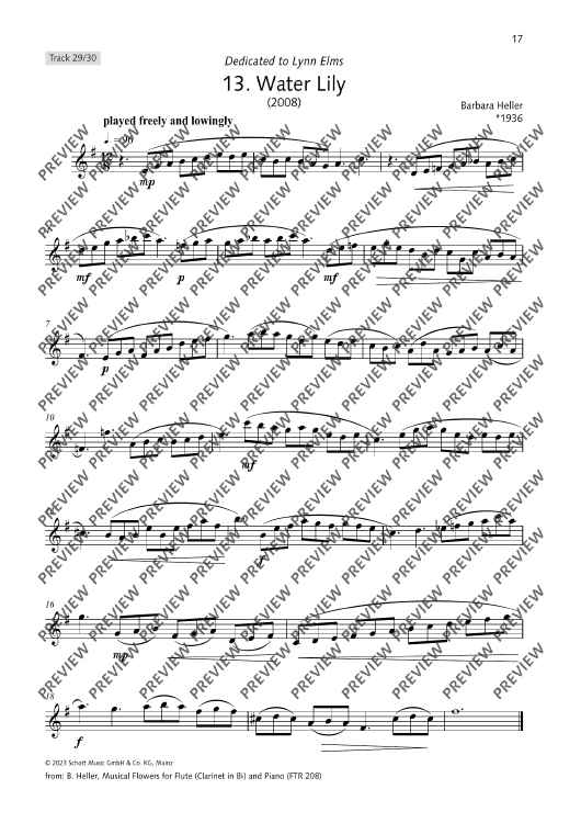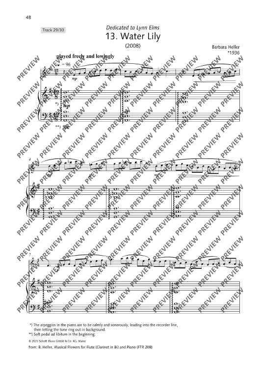 Digital Sheet Music for Water Lily by Barbara Heller scored for Sopranorecorder (tenorrecorder) And Piano; id:500201