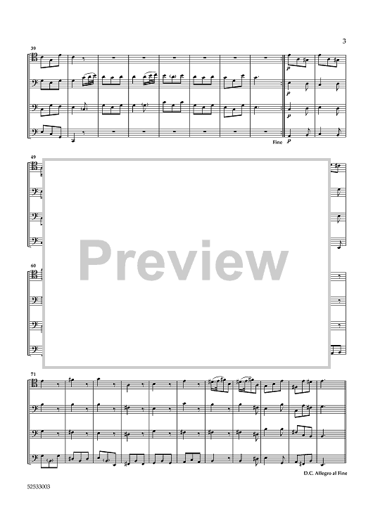 Digital Sheet Music for Water Music Selections for Trombone Quartet - Score by George Frideric Handel, Lynne Latham scored for Trombone Quartet; id:460820