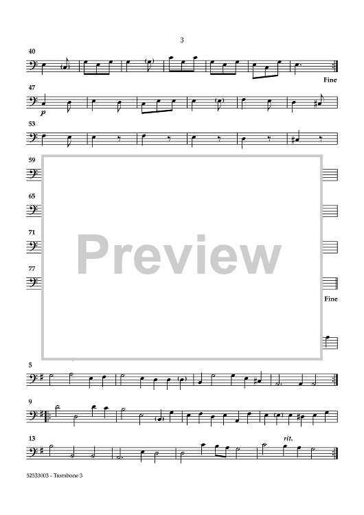 Digital Sheet Music for Water Music Selections for Trombone Quartet - Trombone 3 by , George Frideric Handel, Lynne Latham scored for Trombone Quartet; id:460824