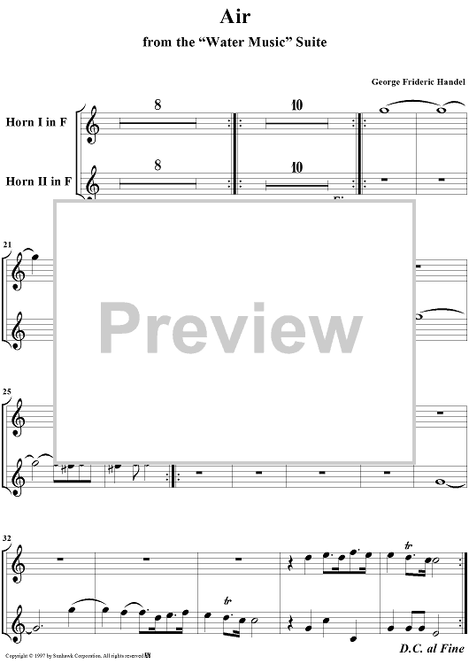 "Water Music Suite No. 1 in F Major, No. 6: Air - Horn 1/Horn 2" Sheet Music by George Frideric Handel
