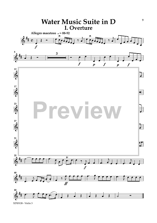 "Water Music Suites - Violin 3 (for Viola)" Sheet Music by George Frideric Handel
