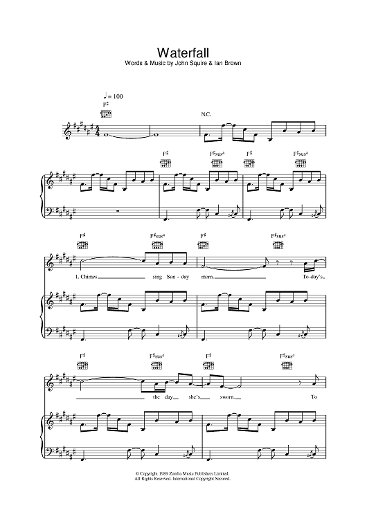 Digital Sheet Music for Waterfall by Ian Brown, John Squire, The Stone Roses scored for Piano/Vocal/Chords; id:401184