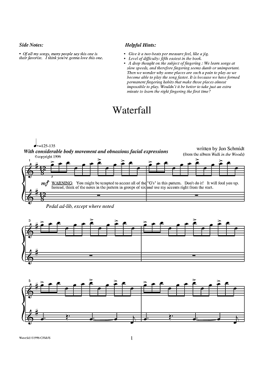 Digital Sheet Music for Waterfall by Jon Schmidt scored for Piano; id:411408