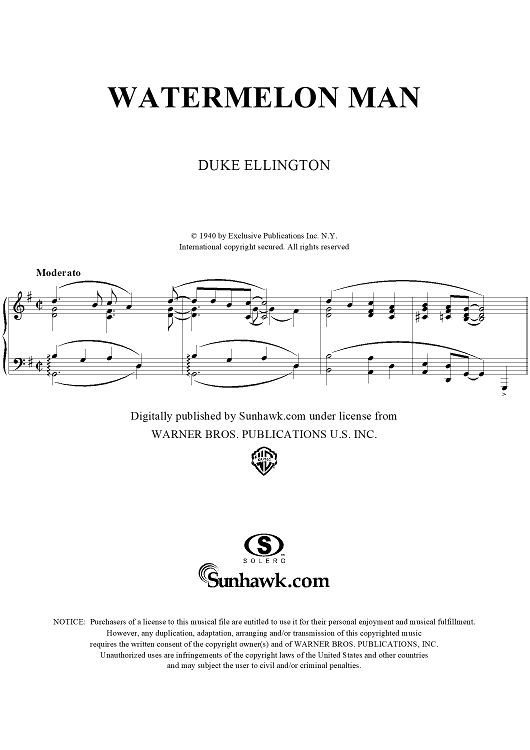 Digital Sheet Music for Watermelon Man by Duke Ellington scored for Piano Solo; id:270602