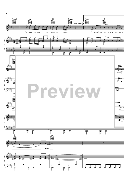Digital Sheet Music for Wave On Wave by Pat Green, David Neuhauser, Justin Pollard scored for Piano/Vocal/Chords; id:372429