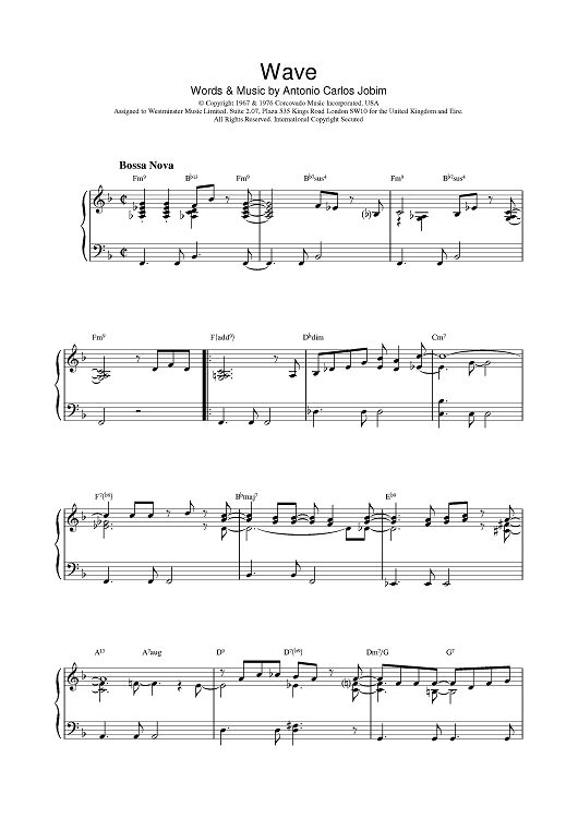 Digital Sheet Music for Wave by Antonio Carlos Jobim scored for Piano; id:380932