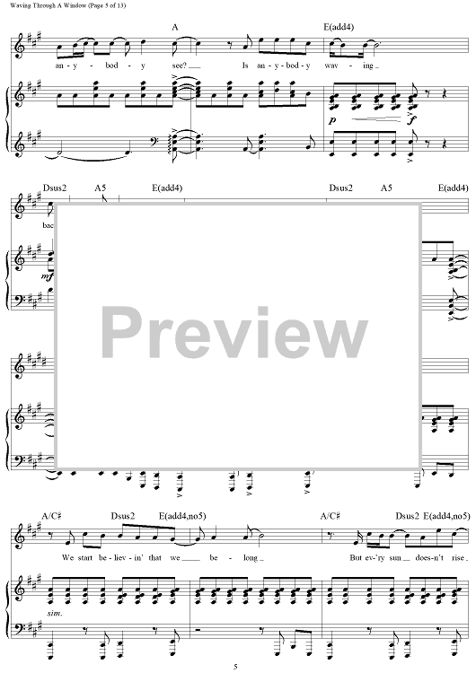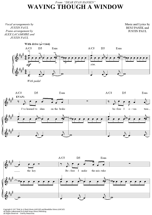 Digital Sheet Music for Waving Through A Window - from Dear Evan Hansen by Benj Pasek, Justin Paul, Alex Lacamoire scored for Piano/Vocal/Chords; id:463882