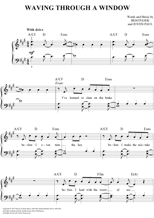 Digital Sheet Music for Waving Through A Window - from Dear Evan Hansen by Benj Pasek, Justin Paul, Alex Lacamoire scored for Easy Piano/Vocal/Chords; id:465522