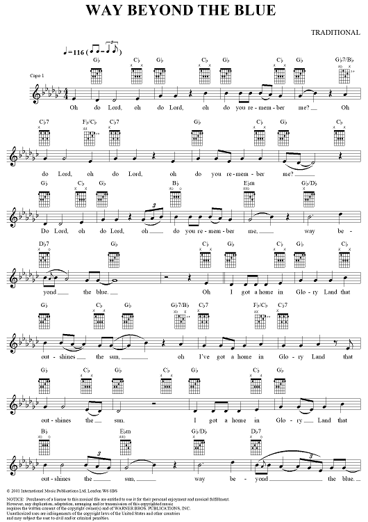Digital Sheet Music for Way Beyond the Blue by , Eva Cassidy, Traditional scored for Lead Sheet; id:297092