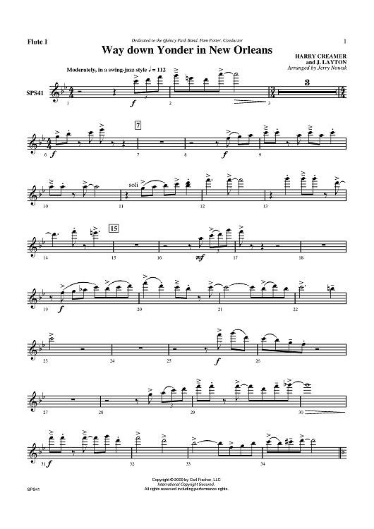 Digital Sheet Music for Way down Yonder in New Orleans - Flute 1 by Henry Creamer, Turner Layton, Jerry Nowak scored for Symphonic Band; id:406299