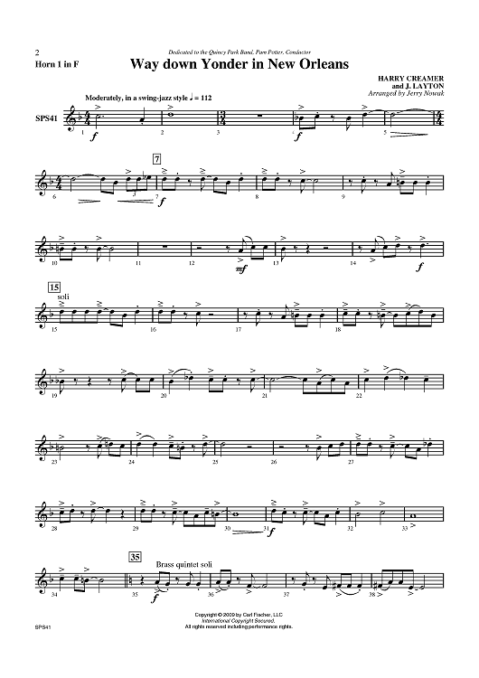 Digital Sheet Music for Way down Yonder in New Orleans - Horn in F 1 by Henry Creamer, Turner Layton, Jerry Nowak scored for Symphonic Band; id:406315