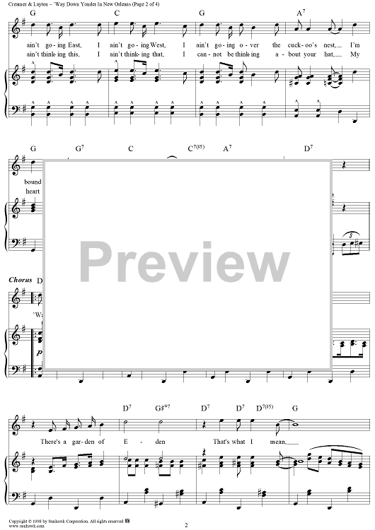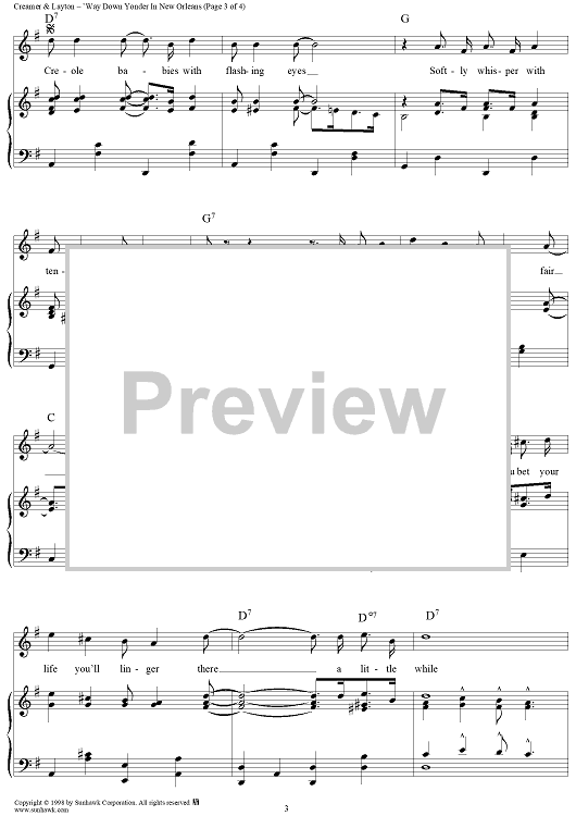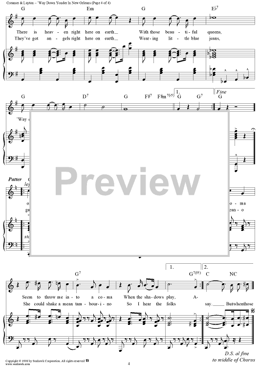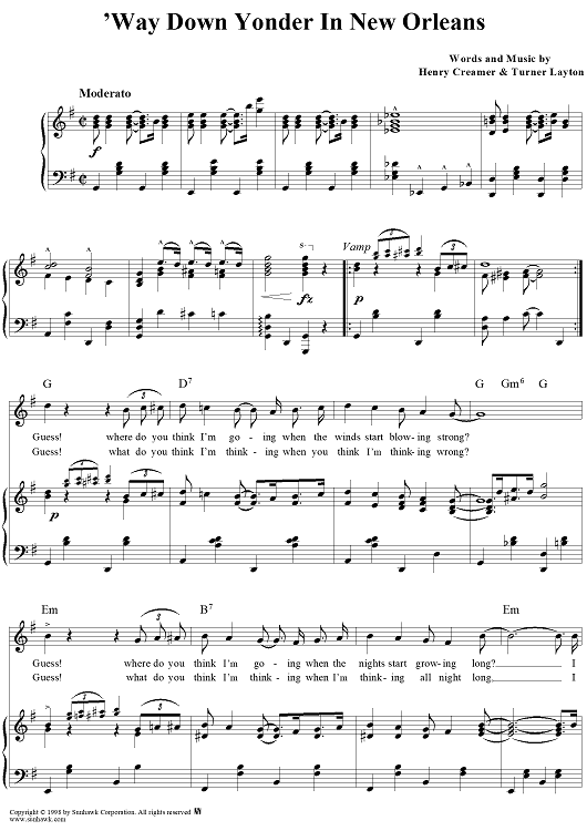 Digital Sheet Music for Way Down Yonder in New Orleans by Henry Creamer, Turner Layton, Freddy Cannon scored for Piano/Vocal/Chords; id:111263