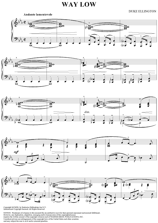 Digital Sheet Music for Way Low by Duke Ellington scored for Piano Solo; id:116338