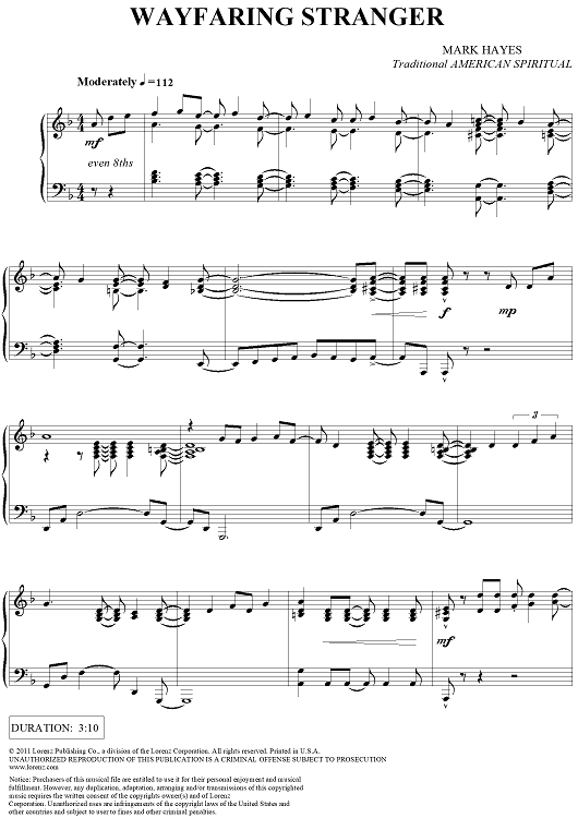 Digital Sheet Music for Wayfaring Stranger by Mark Hayes, Traditional American Spiritual scored for Piano Solo; id:433371