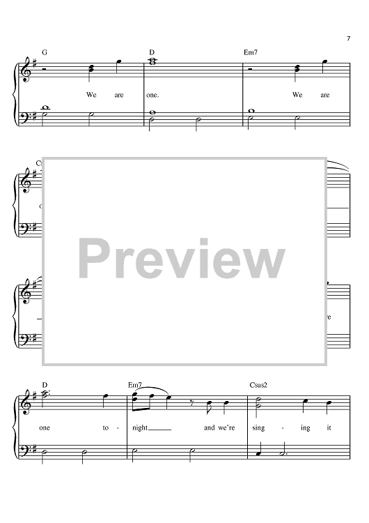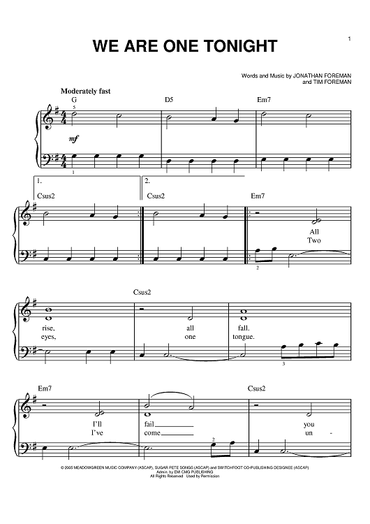 Digital Sheet Music for We Are One Tonight by Jonathan Mark Foreman, Switchfoot, Tim Foreman scored for Easy Piano; id:396141