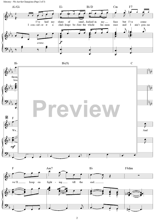 Digital Sheet Music for We Are the Champions by Queen, Freddie Mercury scored for Piano/Vocal/Chords; id:362964