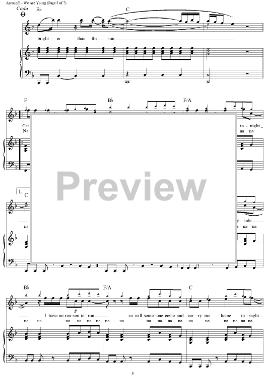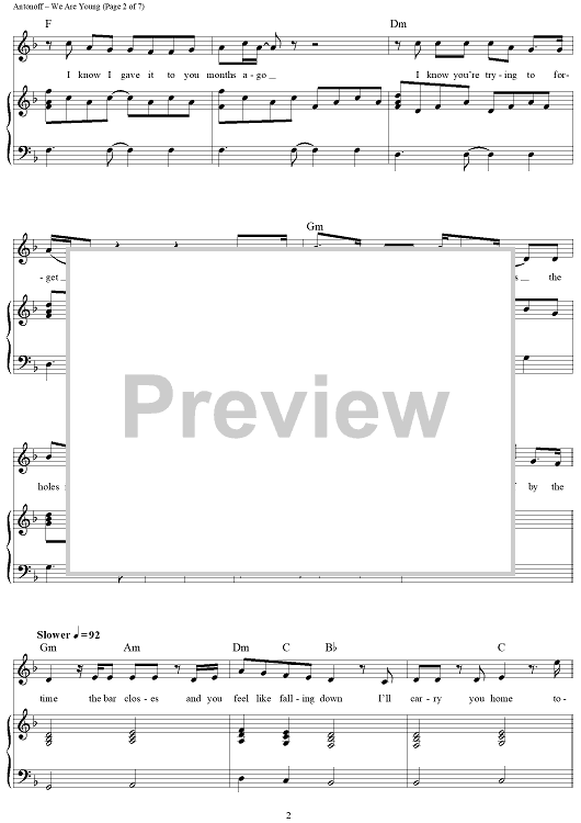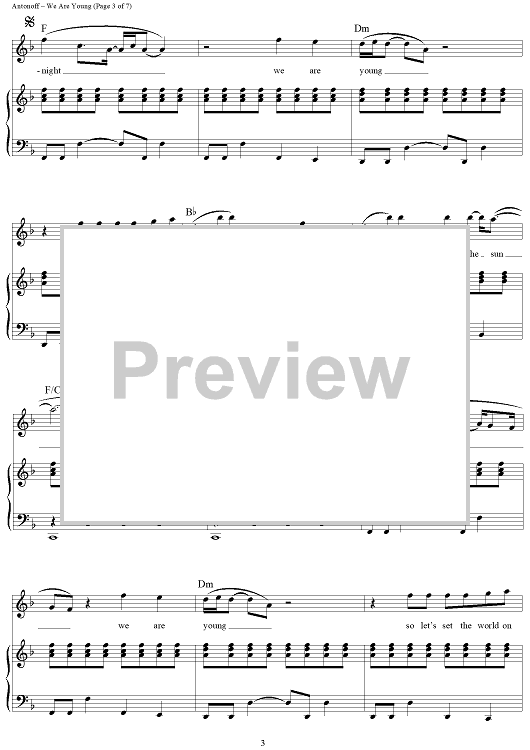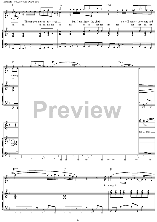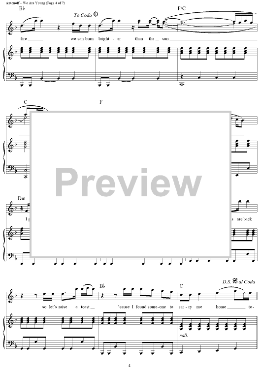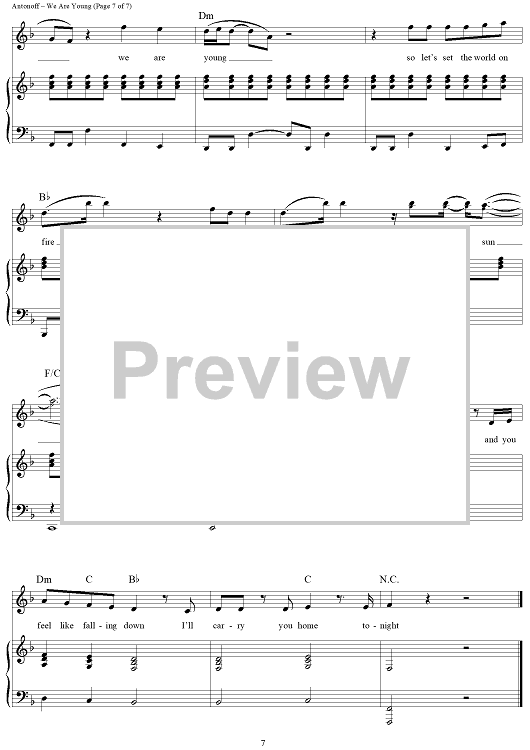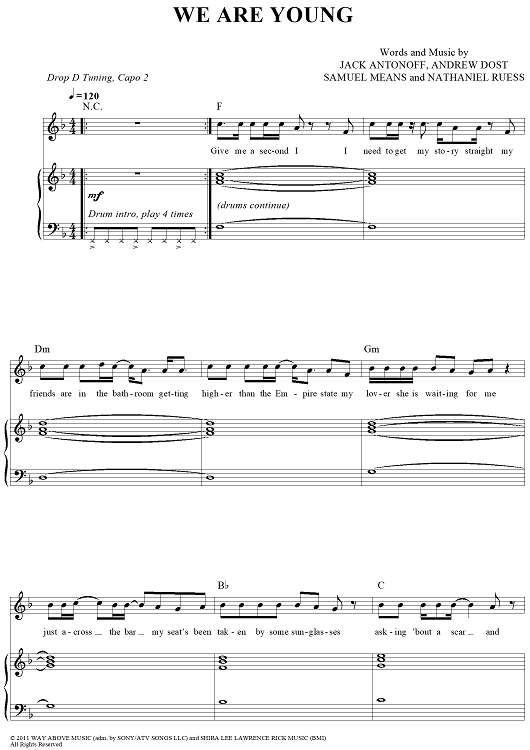 Digital Sheet Music for We Are Young by Jack Antonoff, Andrew Dost, Samuel Means, Nathaniel Ruess, Fun. scored for Piano/Vocal/Chords; id:429470