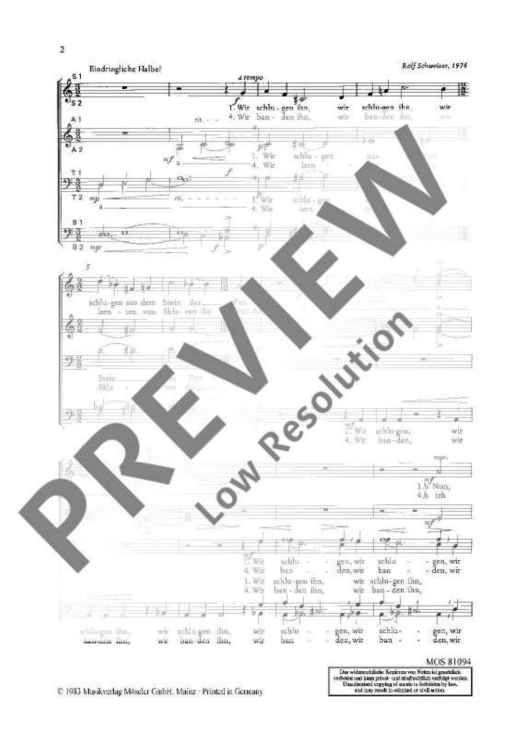 Digital Sheet Music for We beat him - Choral Score by Rolf Schweizer scored for Mixed Choir (ssaattbb); id:492826