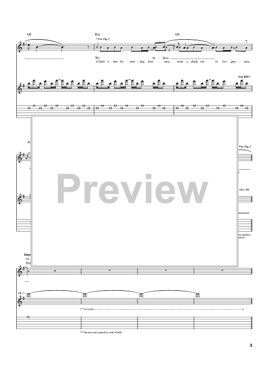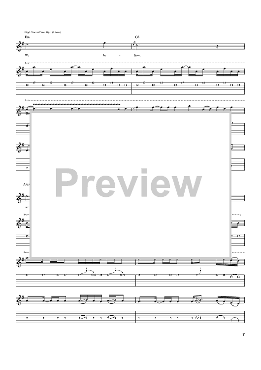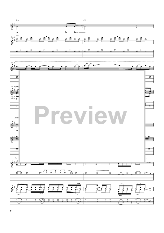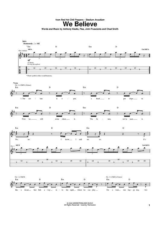 Digital Sheet Music for We Believe by Flea, John Frusciante, Anthony Kiedis, Red Hot Chili Peppers, Chad Smith scored for Guitar Tab; id:391515