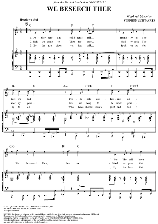 Digital Sheet Music for We Beseech Thee by Stephen Schwartz scored for Piano/Vocal/Chords; id:120445