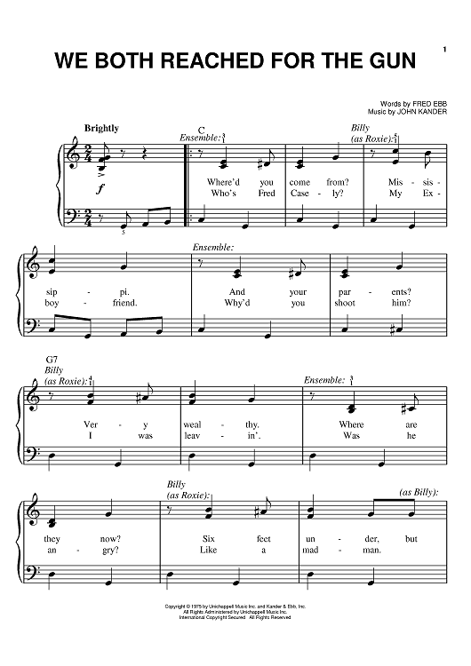 Digital Sheet Music for We Both Reached For The Gun by John Kander, Fred Ebb scored for Easy Piano; id:371589