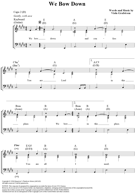 Digital Sheet Music for We Bow Down by Viola Grafstrom scored for Piano/Vocal/Chords; id:109355
