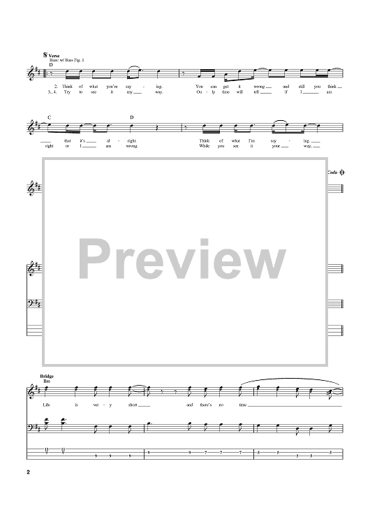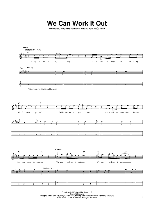 Digital Sheet Music for We Can Work It Out by Paul McCartney, The Beatles, John Lennon scored for Bass Tab; id:369637