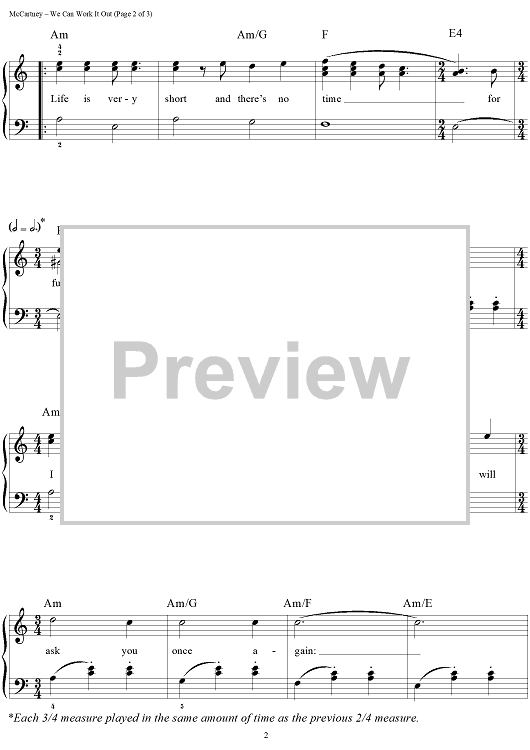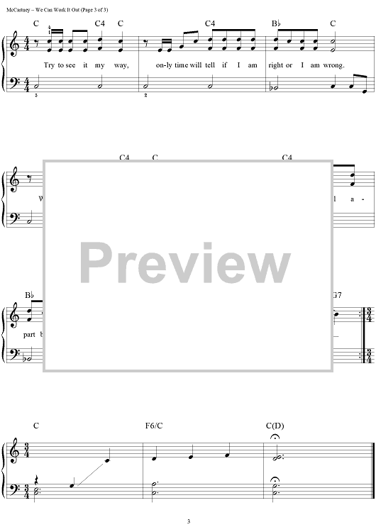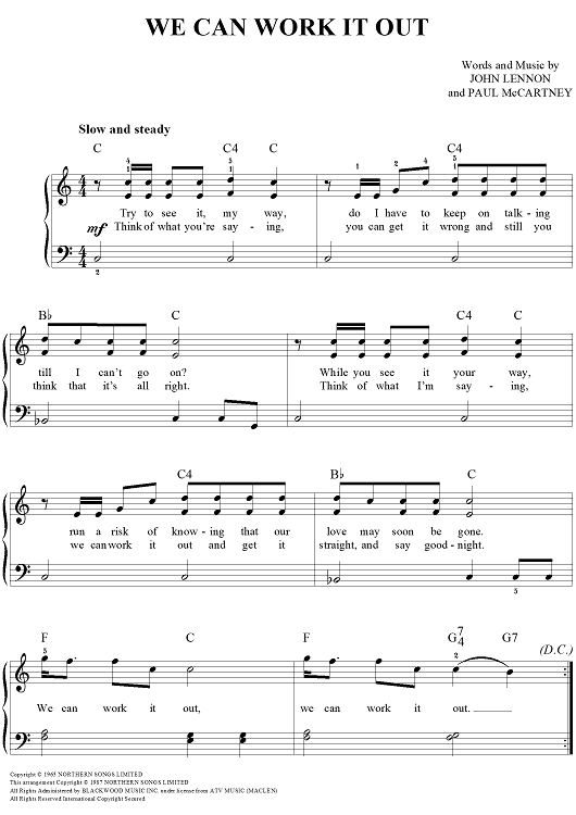 Digital Sheet Music for We Can Work It Out by Paul McCartney, The Beatles, John Lennon scored for Easy Piano/Vocal/Chords; id:452001
