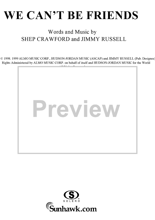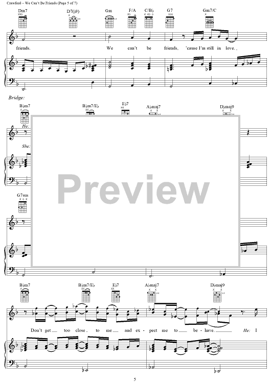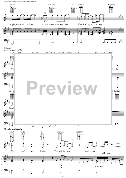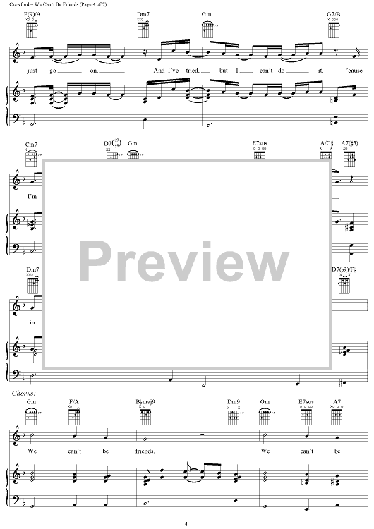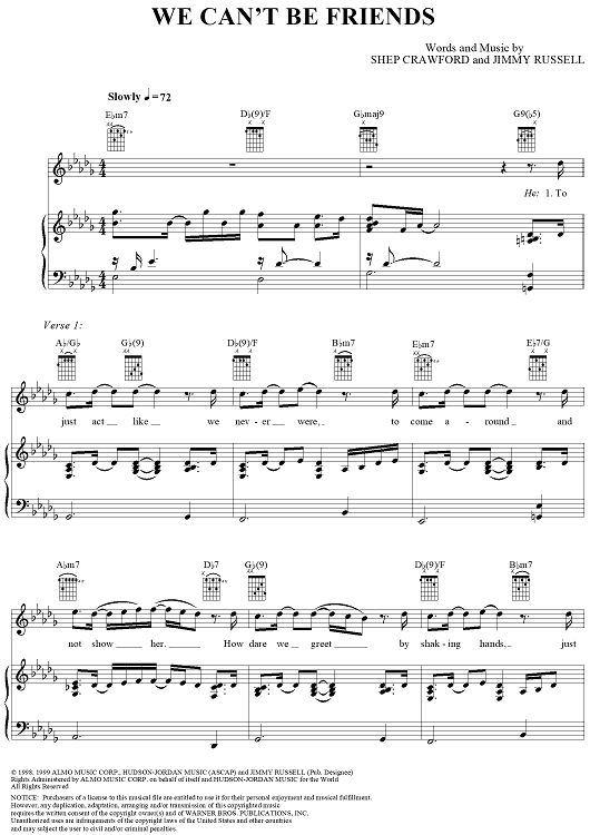 Digital Sheet Music for We Can't Be Friends by Shep Crawford, Jimmy Russell, Deborah Cox scored for Piano/Vocal/Chords; id:132909